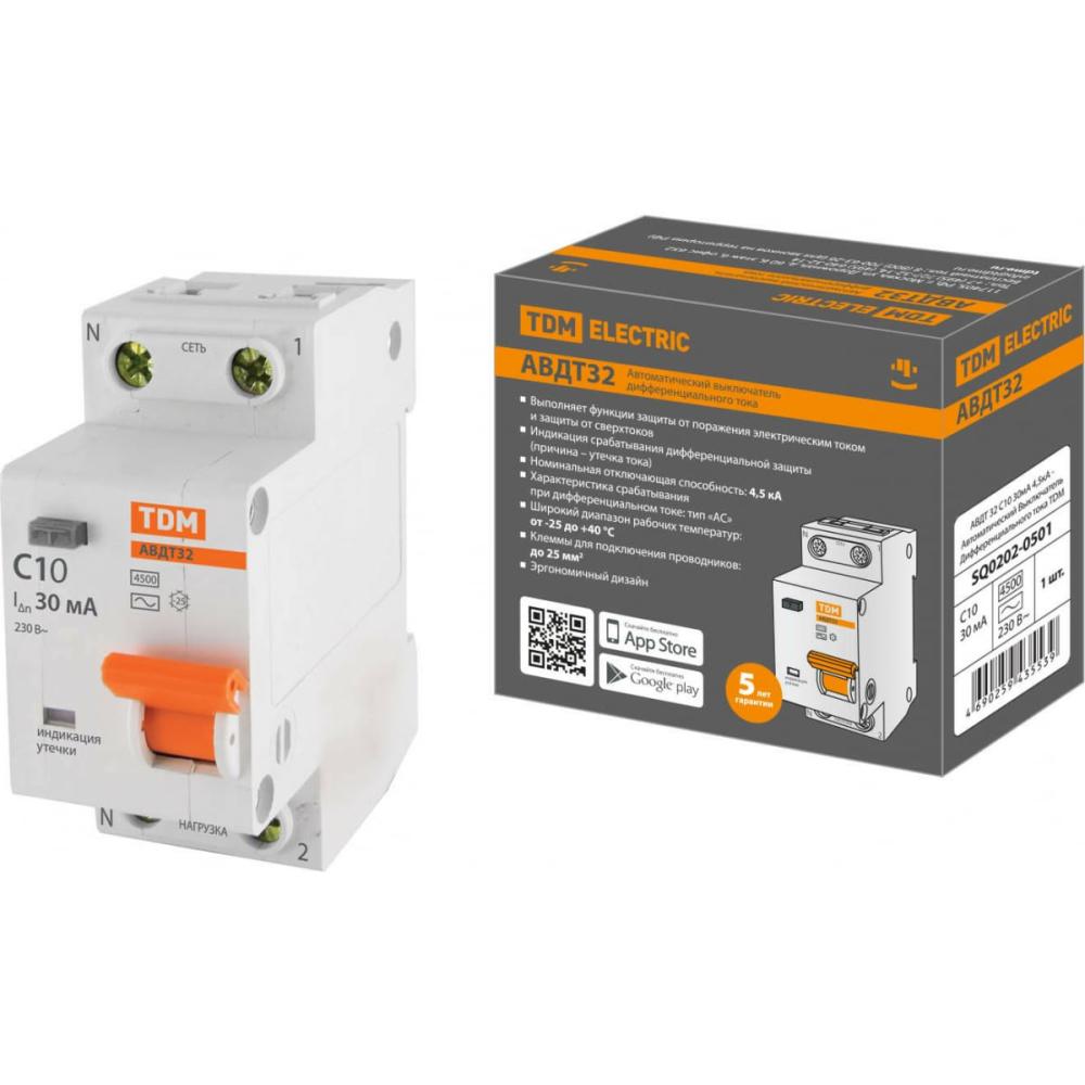 Технические характеристики TDM 32 2P(1P+N) C10А 30мА 4,5кА тип АС SQ0202-0501