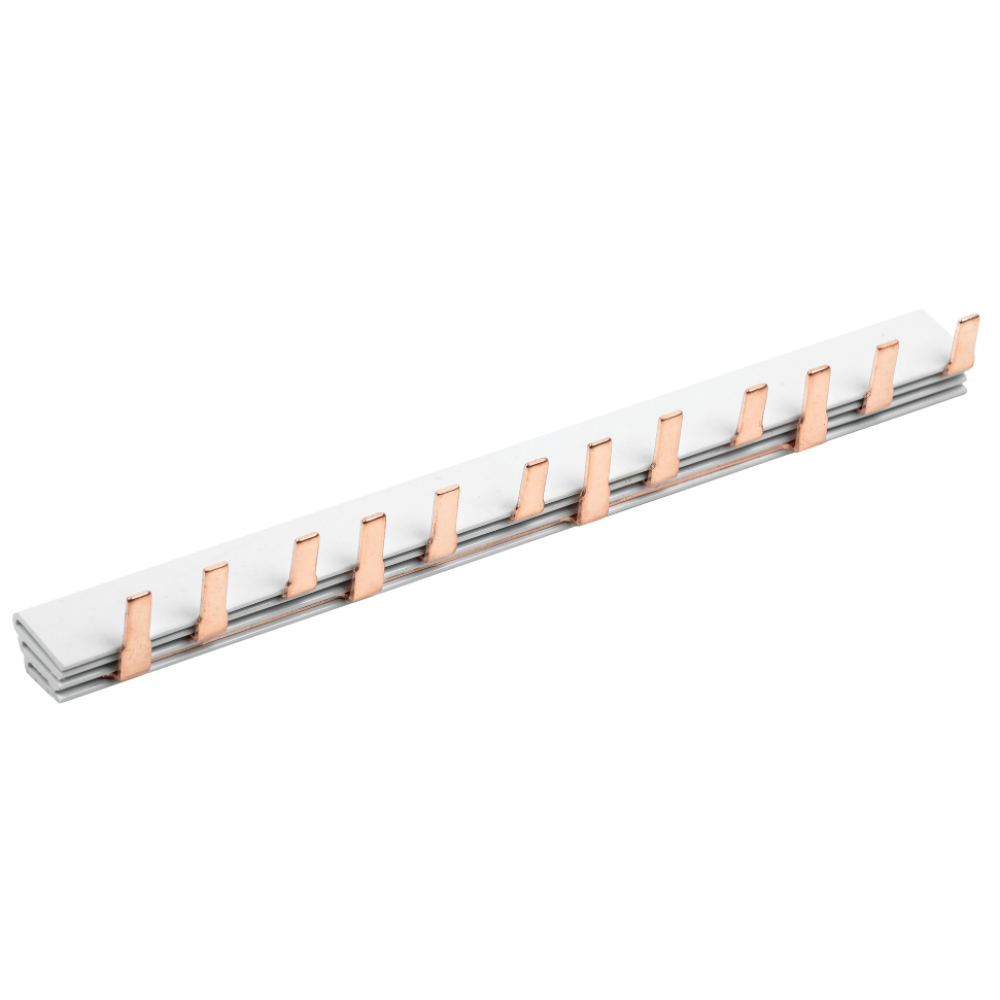 Применяются для удобного и безопасного соединения групп: ВА (выключатели автоматические), АД (автоматы дифференциальные), ВД (выключатели дифференциальные), ВН (выключатели нагрузки). Шины с шагом 18 мм предназначены для коммутации аппаратуры шириной, кратной одному модулю, шины с шагом 27 мм предназначены для коммутации изделий шириной, кратной полутора модулям. Шины, рассчитанные на номинальный ток 100 А, могут быть использованы с номинальным током 125 А, если вводной автомат подключать по центру.