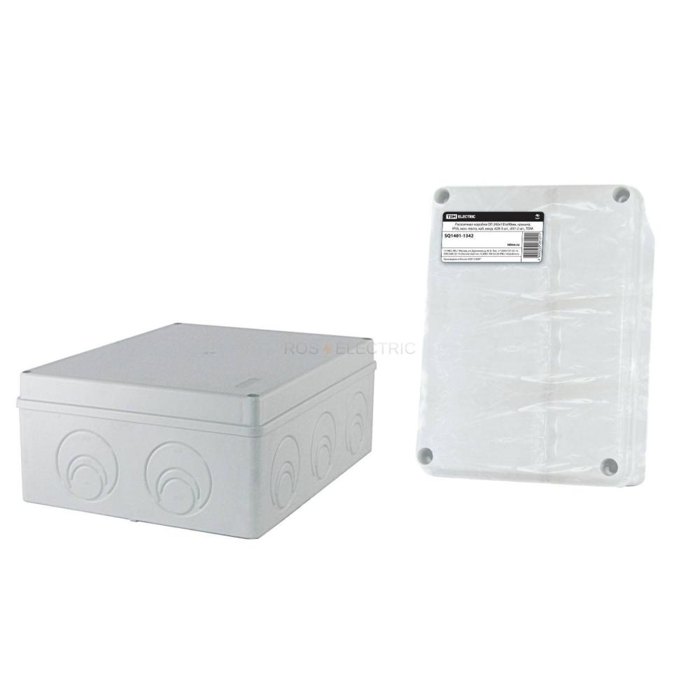 Краткое описание: Коробка ответвительная с откидной крышкой для открытой проводки с 6 кабельными вводами, 120х80х50 мм, степень защиты IP55, цвет серый