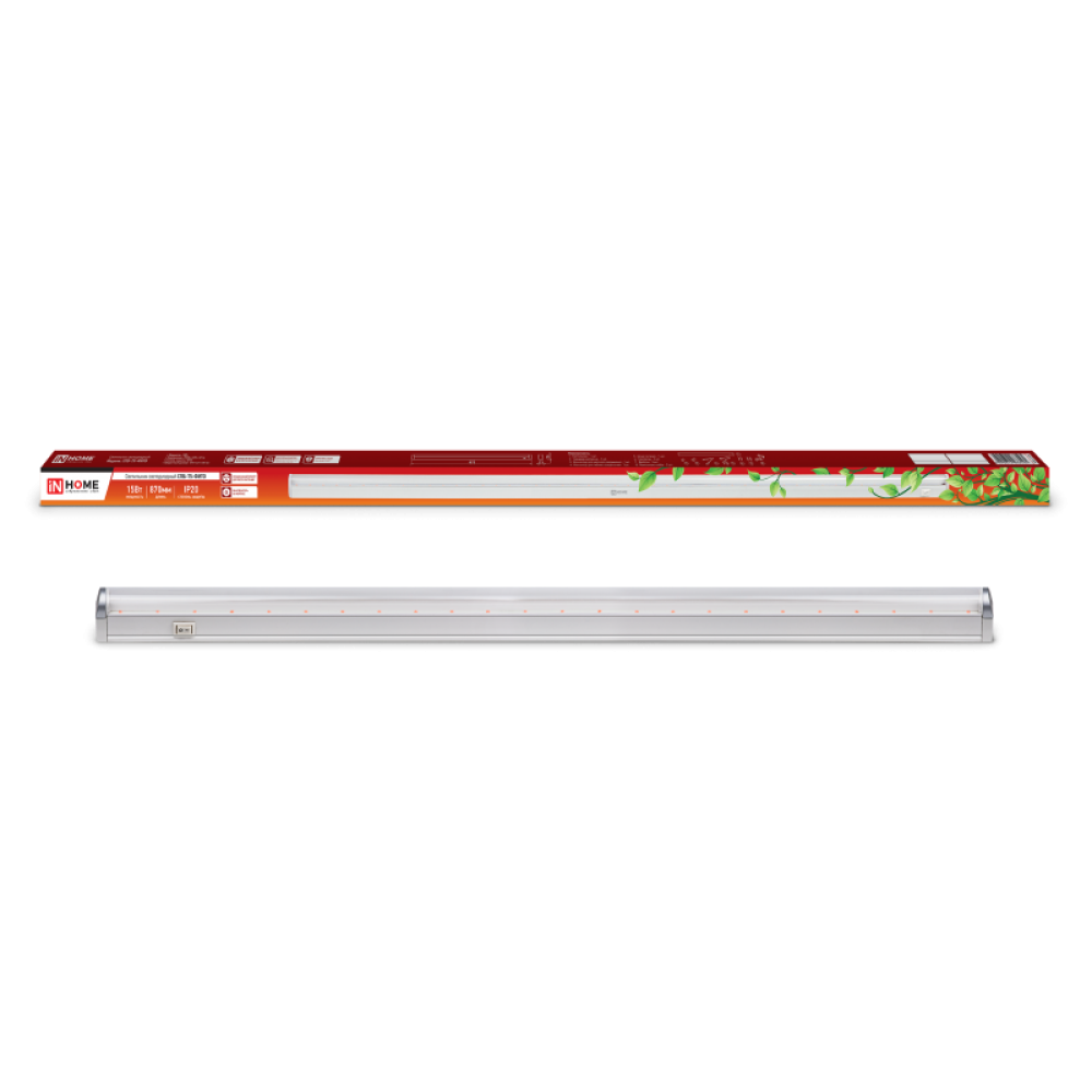 СПБ-Т5-ФИТО от ТМ INhome – это линейный светодиодный светильник накладного типа с выключателем на корпусе, коннектором и креплением в комплекте. Модель используется для стимуляции роста растений (выращивания рассады, микрозелени, а также дополнительного освещения тропических цветов и других солнцелюбивых растений).