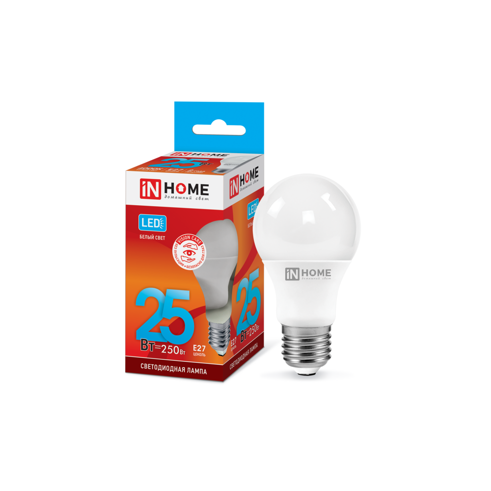 Лампа 25Вт Е27 6500К А65 (шар) IN HOME