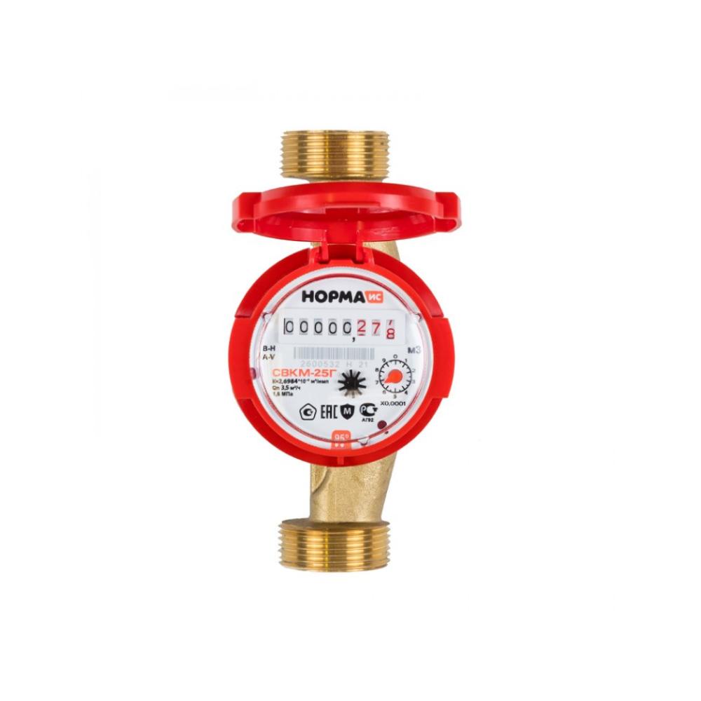 Счетчик воды Норма СВКМ-25 Г для горячей воды Счетчик воды для установки в многоквартирных домах, объектах коммунального хозяйства и частном секторе, на промышленных объектах. Оснащены надежным измерительным механизмом, исключающим срывы при пограничных расходах воды. Крыльчатка из полипропилена выдерживает высокую температуру до +95°С и значительные нагрузки. Стабильная герметичность. Поставляется с комплектом монтажных частей. Материал корпуса латунь Диаметр условного прохода, мм 25 Конструкция счетчика Механический Вид счетчика Сухоходный Принцип работы Одноструйный Гарантийный срок эксплуатации 30 месяцев со дня ввода прибора в эксплуатацию, но не более 36 месяцев со дня первичной поверки. При отсутствии в руководстве по эксплуатации даты ввода в эксплуатацию гарантийный срок эксплуатации отсчитывается со дня первичной поверки
