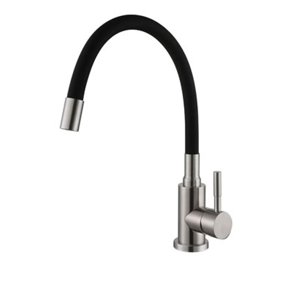 Смеситель для кухни GOLDEN FOX с гибким силиконовым изливом, выполненный из нержавеющей стали с черным покрытием. Модель оснащена керамическим картриджем для плавного управления температурой воды. Уникальный излив из термостойкого силикона сохраняет любую заданную форму, позволяя точно направлять воду. Высота конструкции 27 см обеспечивает удобную работу с высокой посудой. Аэратор с сеточкой экономит воду и предотвращает разбрызгивание.