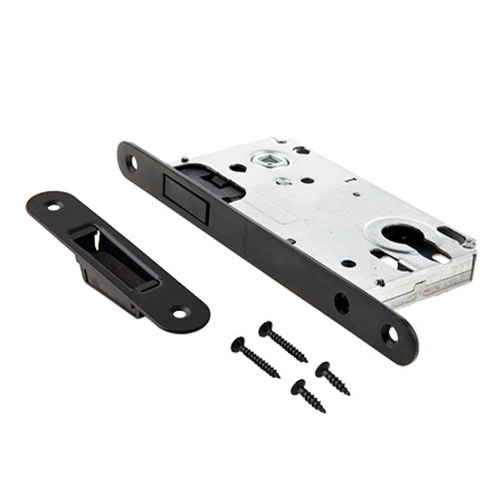 Классические межкомнатные замки и защёлки. Размеры корпуса идеальны для установки с дверными ручками на розетке в комплекте с накладкой на цилиндр или сантехническим фиксатором.