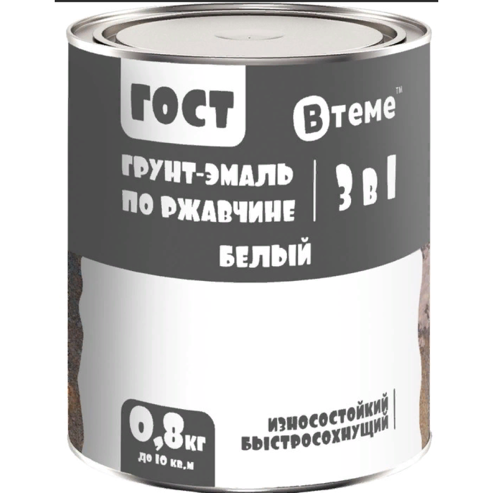 Эмаль-грунт "3 в 1" по ржавчине ГОСТ белый RAL9010 ( 0,8кг) ТМ "ВТеме"