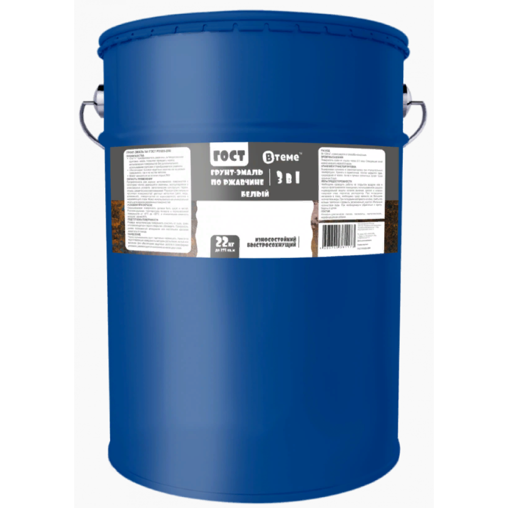 Эмаль-грунт "3 в 1" по ржавчине ГОСТ белый RAL9010 (22 кг) ТМ "ВТеме"