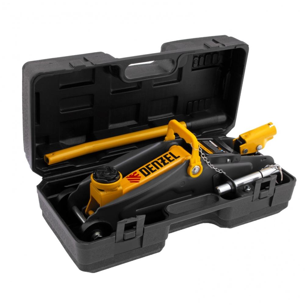 Домкрат гидравлический подкатной с фиксатором, 2 т, 130-330 мм, в кейсе Denzel