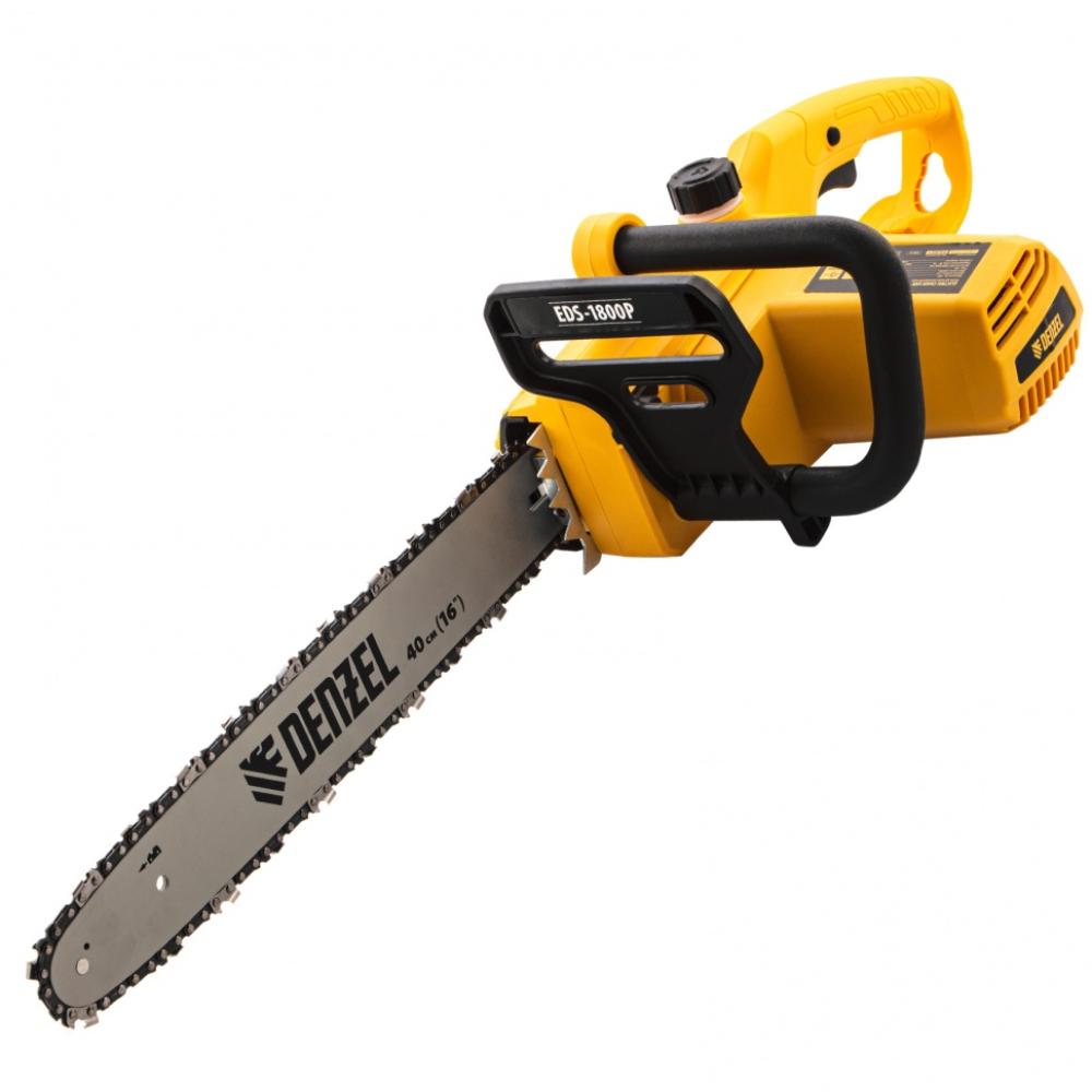 Пила цепная Denzel EDS-1800P оснащена электромотором мощностью 1.8 кВт, который обеспечивает ровный распил различных пород древесины. Шина длиной 40 см справится с валкой деревьев, подравниванием ветвей, заготовкой дров и т.д.