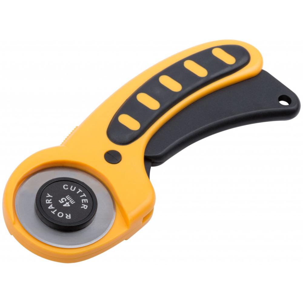 С дисковым лезвием. Для разрезания бумаги, картона, линолеума, кожи. Материал: лезвие из высокоуглеродистой стали SK5, ручка из ABS пластика. Упаковка: блистер.