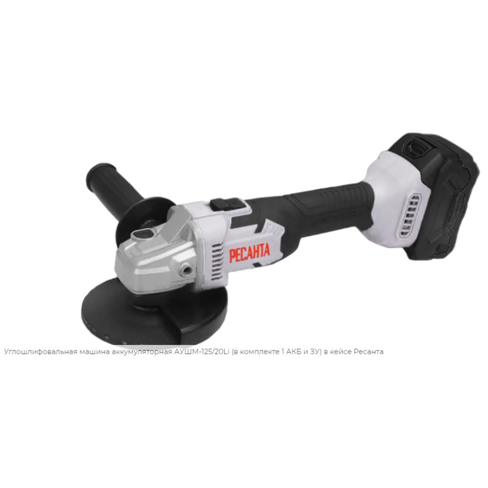 Аккумуляторная угловая шлифовальная машина АУШМ-125/20Li Ресанта - ручной электроинструмент, предназначенный для выполнения шлифовальных и отрезных работ по металлу и иным конструкционным и строительным материалам (кроме асбестосодержащих), без подачи воды, в производственных и бытовых условиях, с помощью шлифовального/отрезного круга. Источником питания служит литий-ионный аккумулятор.