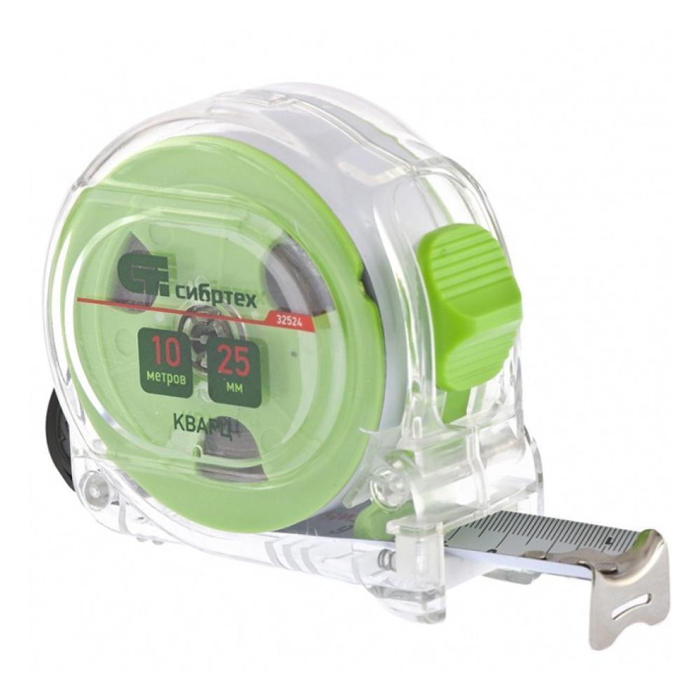 Рулетка 10 м х 25 мм, амортизатор, прозрачный корпус, Кварц, Сибртех