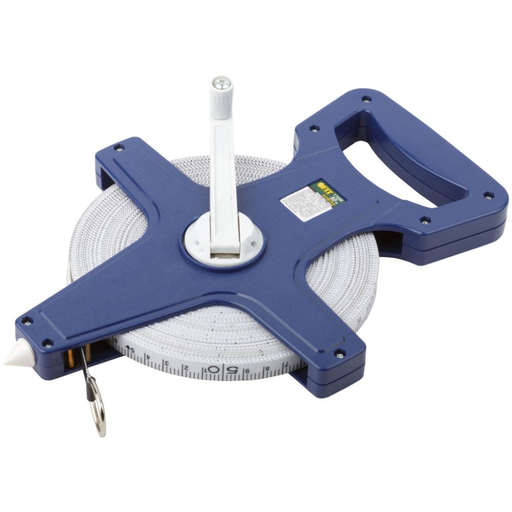Геодезическая рулетка FIT применяются строителями и геодезистами для межевания земельных или других участков. Рулетка оборудована штыком для того, чтобы ее легко можно было закрепить в земле при измерении больших длин. Мерное полотно выполнено из фибергласа и отличается гибкостью и устойчивостью к истиранию. Металлическое кольцо-зацеп позволяет фиксировать ленту. Корпус рулетки изготовлен из пластика, устойчивого к ударным нагрузкам.