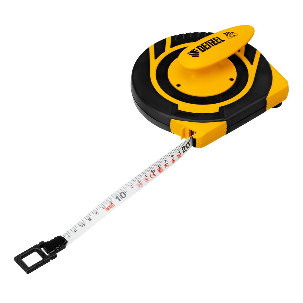 Геодезическая рулетка Denzel 31291 в закрытом корпусе, с фибергласовой лентой размером 30 м х 15 мм, используется для проведения замеров на открытых участках и строительных объектах. Двухкомпонентный корпус из ABS-пластика с вставками из термопластичной резины устойчив к повреждениям. Рулетка будет полезна во время картографических исследований и при создании ландшафтного дизайна.