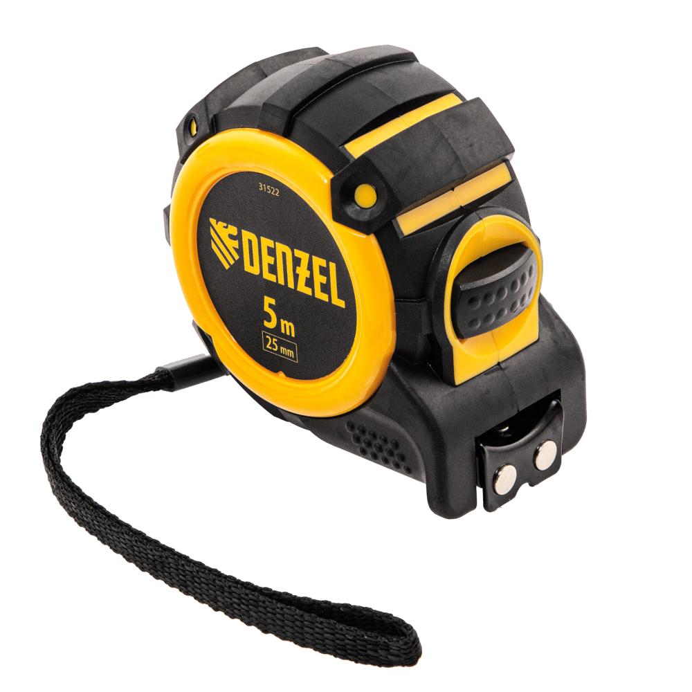 Рулетка Denzel 31522 с автоматической фиксацией полотна размером 5 м х 25 мм, с нейлоновым покрытием, магнитным зацепом и двухсторонней разметкой, предназначена для измерения расстояний и определения габаритов различных предметов. Лента автоматически фиксируется в вытянутом положении, что упрощает работу. Рулетка удобна для работы в труднодоступных местах, будет полезна во время строительных и ремонтных работ.