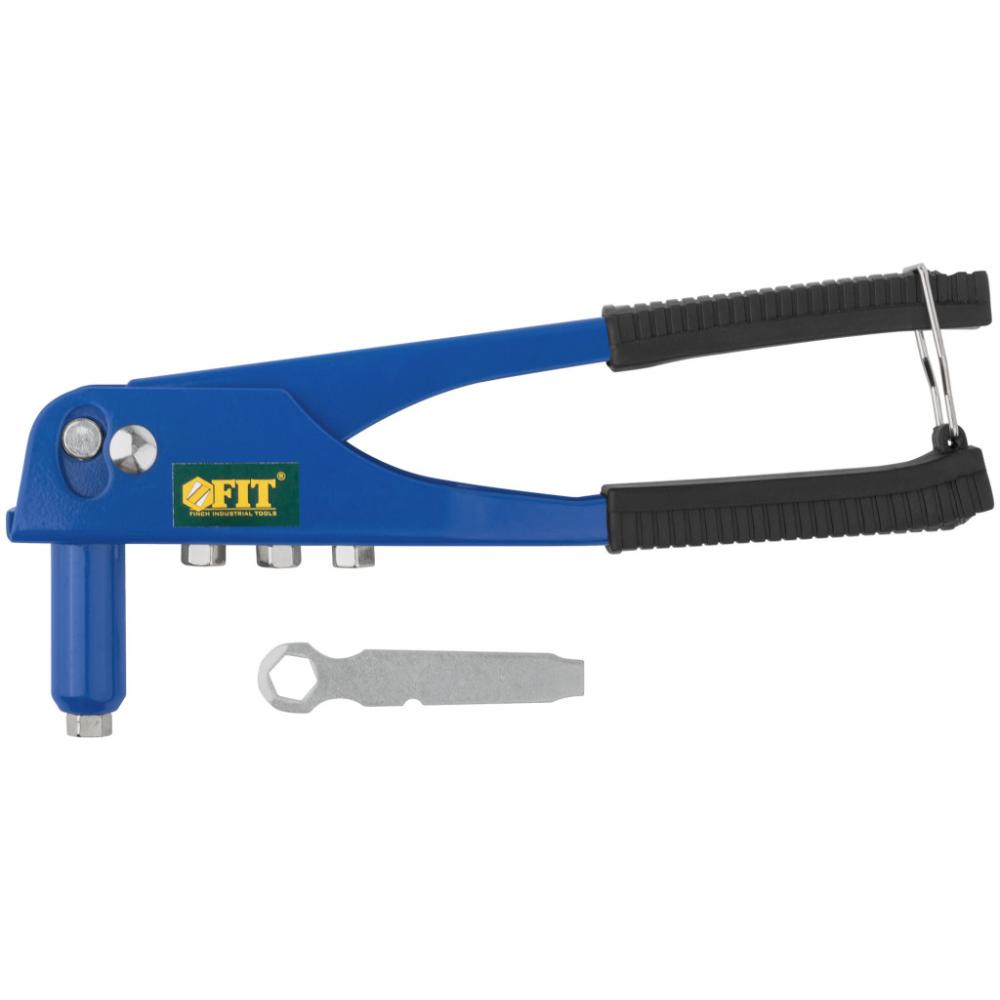 Для крепления вытяжных алюминиевых заклепок. 4 быстросменных насадки, пружинный рычаг для выброса сердечника от заклепок. Материал: инструментальная сталь, рукоятка с покрытием из ПВХ пластика. Упаковка: блистер.