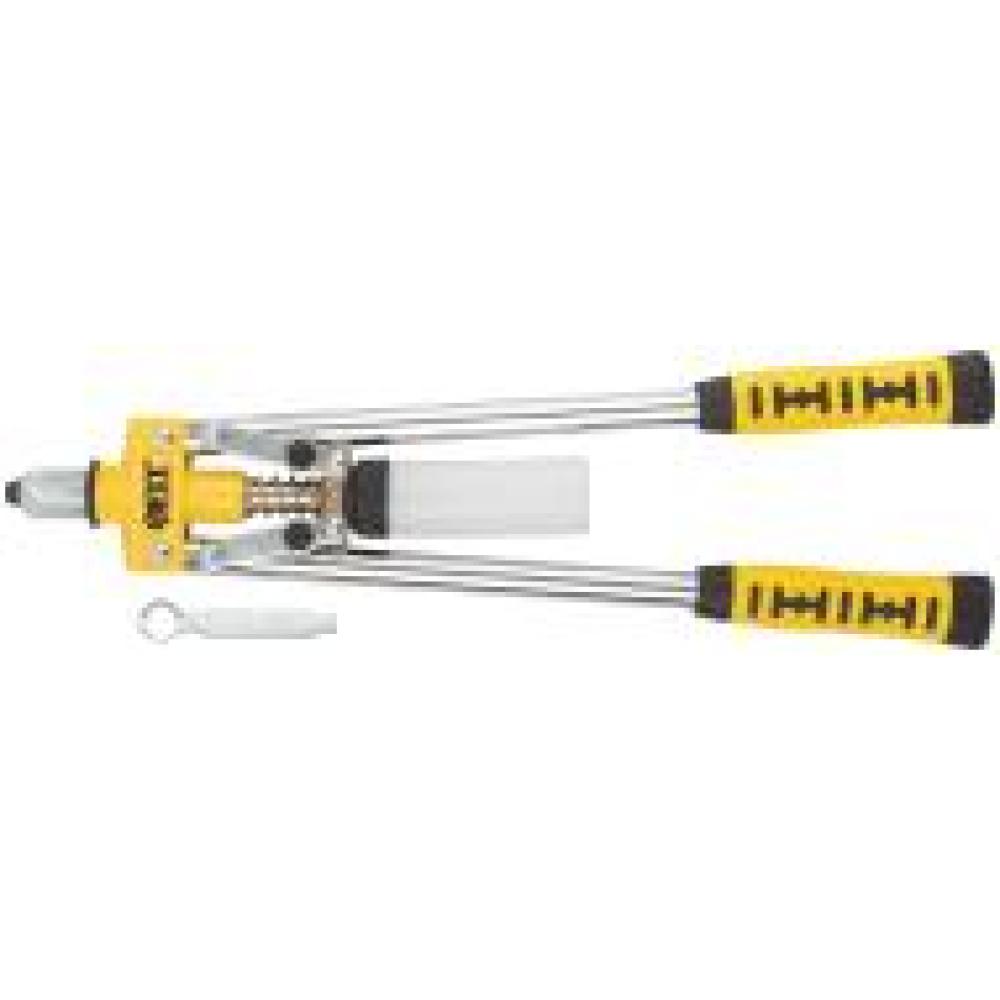 Заклепочник 430 мм. Для заклепок из алюминия, стали и нержавеющей стали диаметром: 3.2, 4.0, 4.8 мм. Пластиковый контейнер для сбора отработанных сердечников заклепок. Материал: инструментальная сталь, алюминий, обрезиненные рукоятки. Упаковка: картонная коробка.
