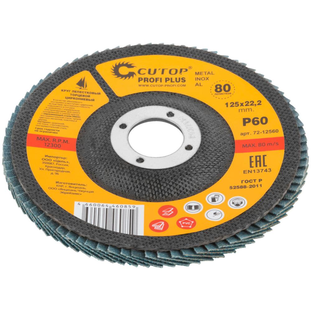 Круг лепестковый торцевой циркониевый cutop profi plus (80 лепестков): 125 х 22,2 мм, Р60