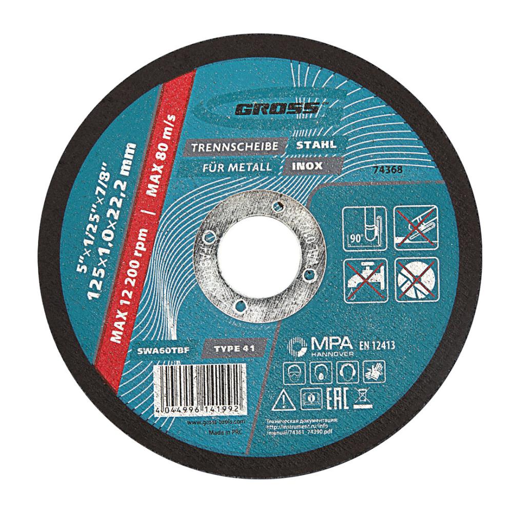 Отрезной круг по металлу Gross SWA60TBF 74368, 125 х 1,0 х 22,2 мм, рассчитан на интенсивный сухой рез нержавеющих легированных и углеродистых сталей. Устанавливается на УШМ соответствующего типоразмера. Надежный и производительный, круг подходит для профессиональной эксплуатации с высокими нагрузками.