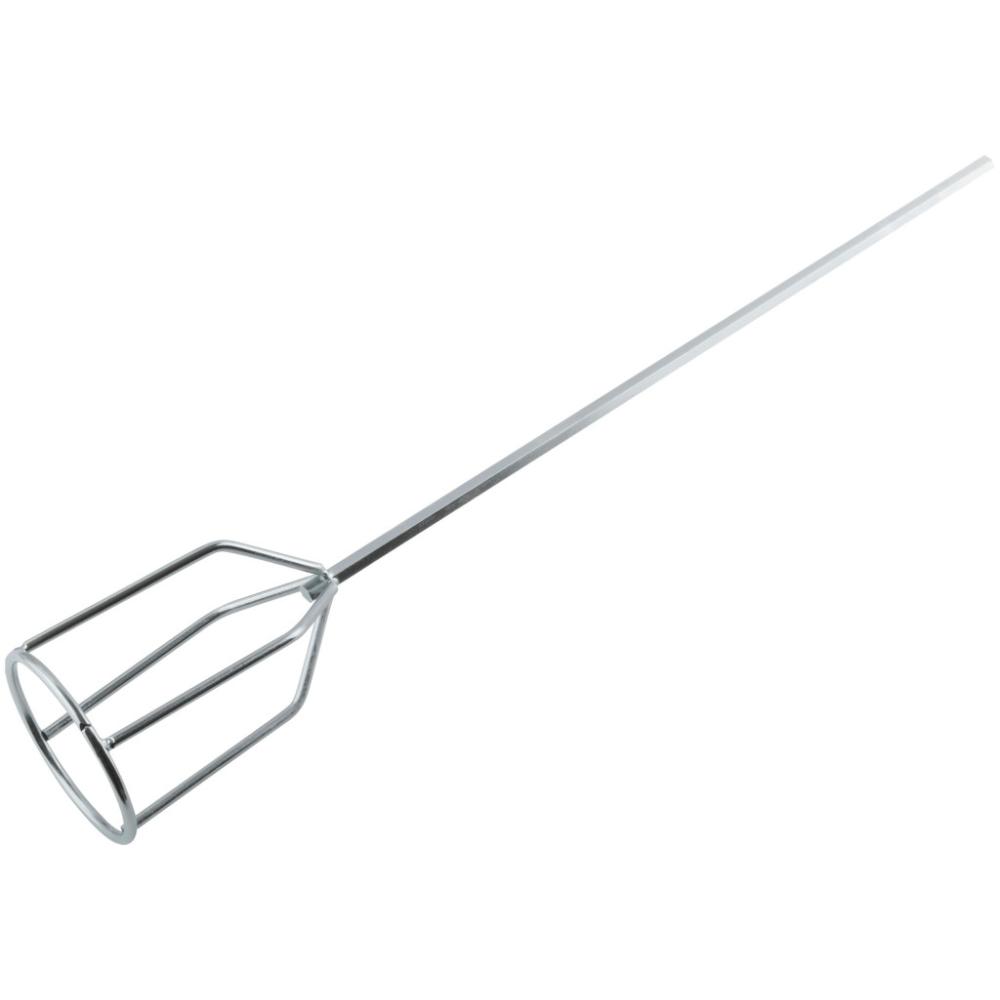 Профи. Насадка на дрель для перемешивания смесей повышенной вязкости (гипсовых смесей, составов для наливных полов и т.д.). Стержень диаметром 8 мм с шестигранным сечением. Материал: инструментальная сталь, цинковое покрытие.