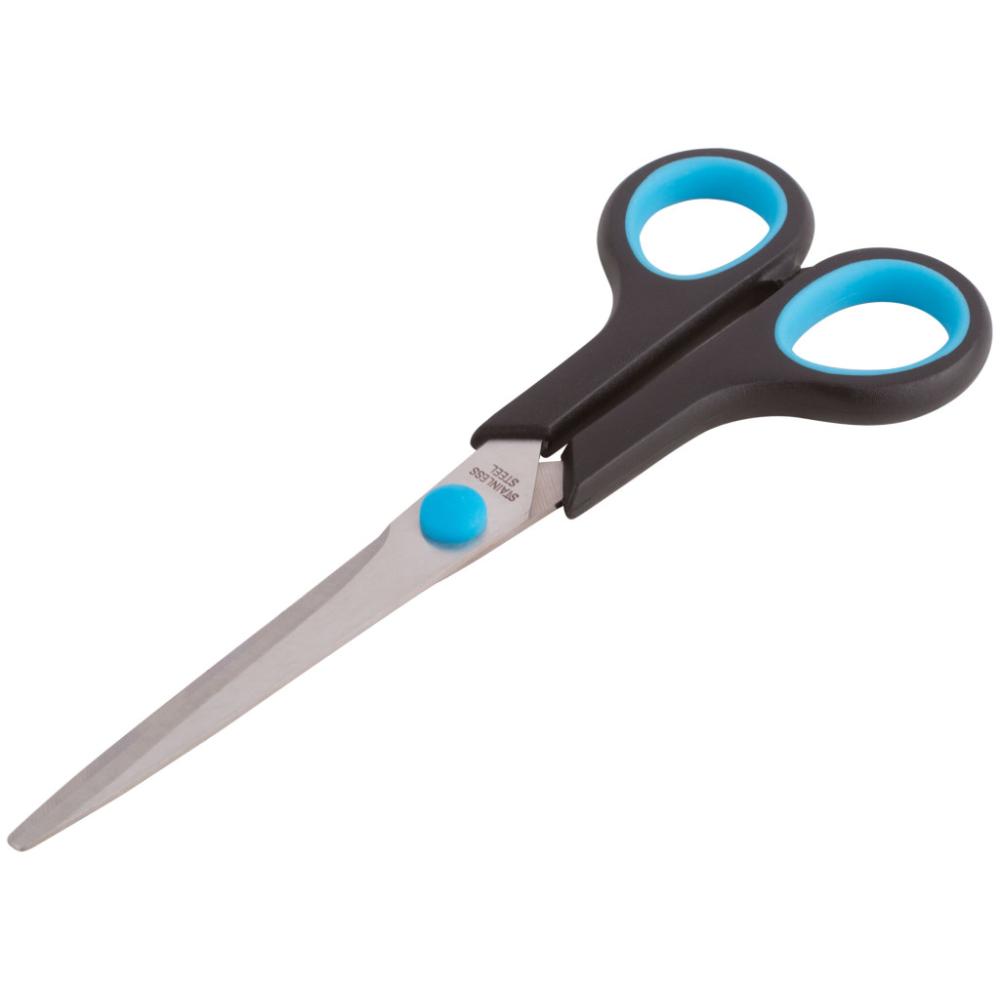 Ножницы бытовые. Толщина лезвия 1,8 мм. Материал: нержавеющая сталь, пластиковые ручки с резиновыми вставками. Упаковка: блистер.