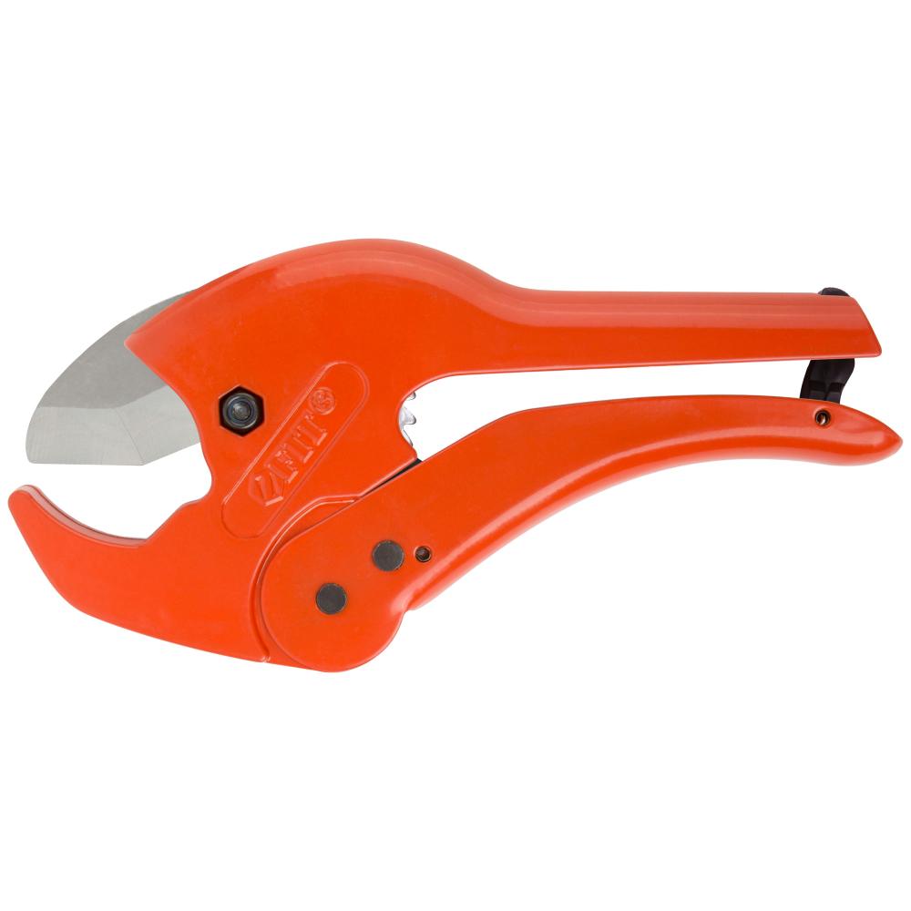 Усиленная конструкция. Для резки труб из пластика и металлопластика. Специальная форма лезвия для предотвращения заминания краев трубок. Материал: корпус из алюминиевого сплава с порошковым покрытием, лезвие из высокоуглеродистой стали SK-5 с хромированным покрытием. Упаковка: блистер.