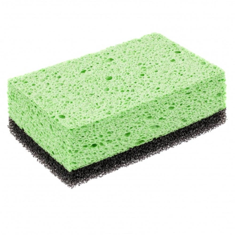 Целлюлозная комбинированная губка Сибртех 86838 размером 150 х 95 х 50 мм применяется для удаления излишков эпоксидной затирки. Она имеет двухслойную структуру: жесткий слой из ретикулированного поролона и целлюлозы используется для первичной очистки, а мягкий — для финишной обработки поверхности и удаления воды.