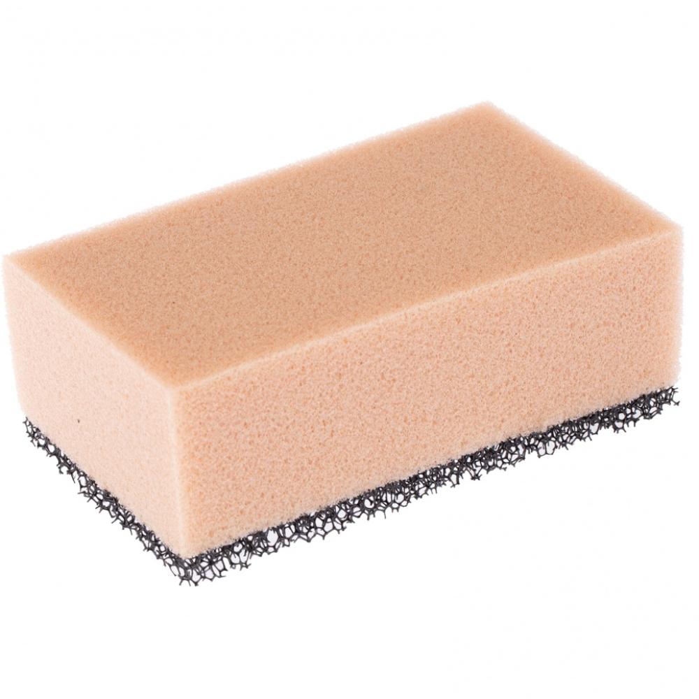 Комбинированная губка Сибртех 86839 размером 160 х 95 х 60 мм применяется для удаления излишков эпоксидной затирки. Она имеет двухслойную структуру: жесткий слой из ретикулированного поролона используется для первичной очистки, а мягкий - для финишной обработки поверхности и удаления воды.