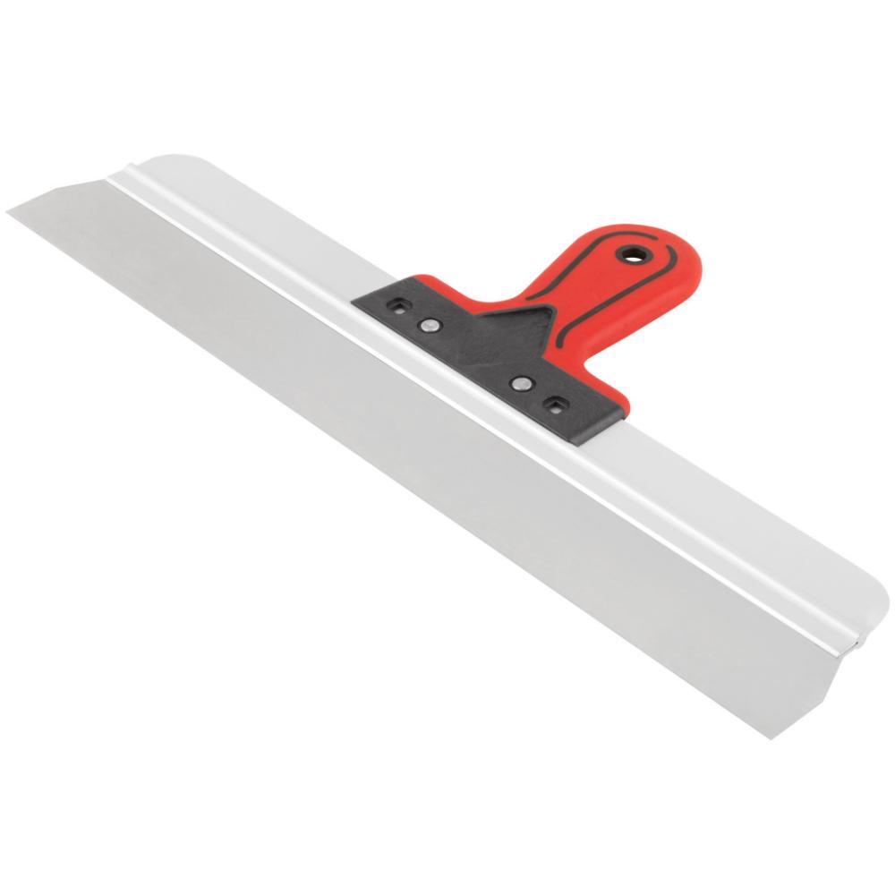 Профи. Для работы на поверхностях большой площади. Материал: лезвие из нержавеющей стали, алюминиевое ребро жесткости, пластиковая прорезиненная ручка.