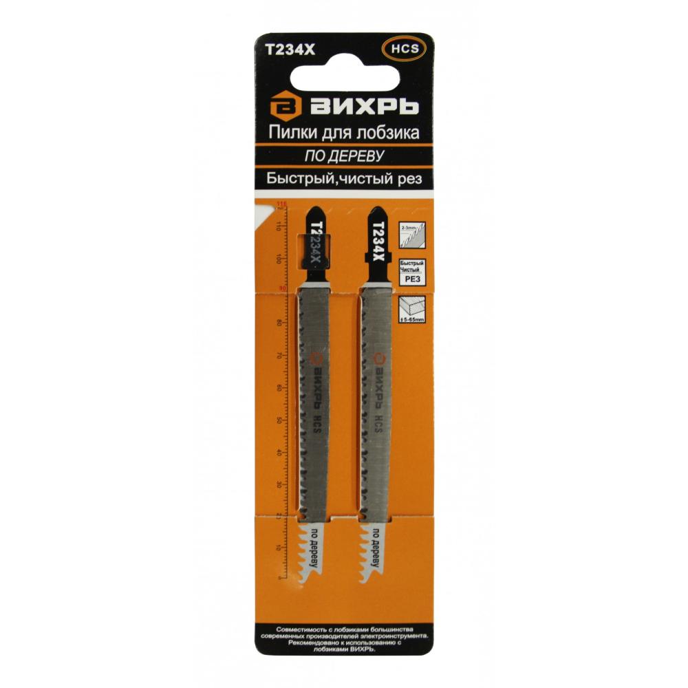 Пилки для лобзика Т234Х по дереву,быстрый,чистый рез,прогрессирующий зуб 116х90мм (2 шт) Вихрь.