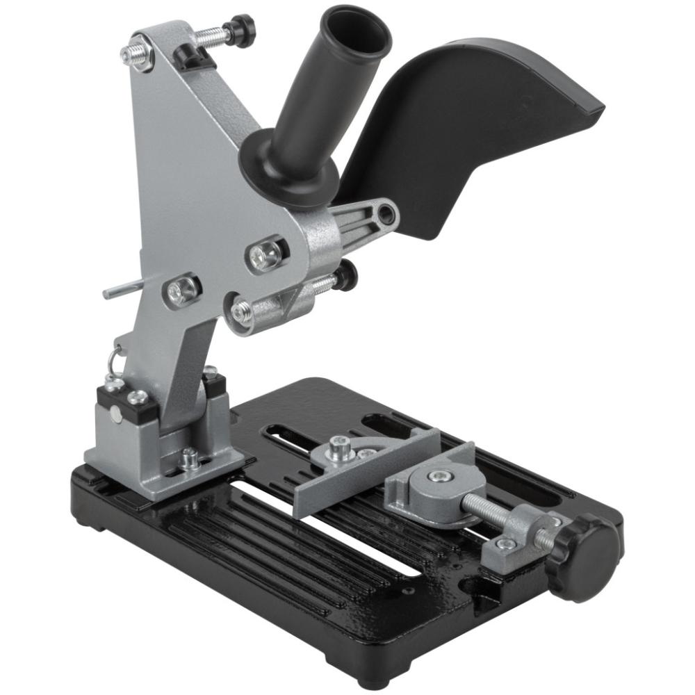 Усиленный. Предназначен для установки УШМ (под диски 115 и 125 мм) при производстве отрезных работ по металлу и жестким пластикам. Длина реза до 80 мм, глубина - до 30 мм. Стол с эксцентриковыми поворотными тисками. Максимальноая ширина заготовки, зажимаемой тисками - 80 мм. Материал: алюминиевый сплав, инструментальная сталь, нейлон. Упаковка: картонная коробка.