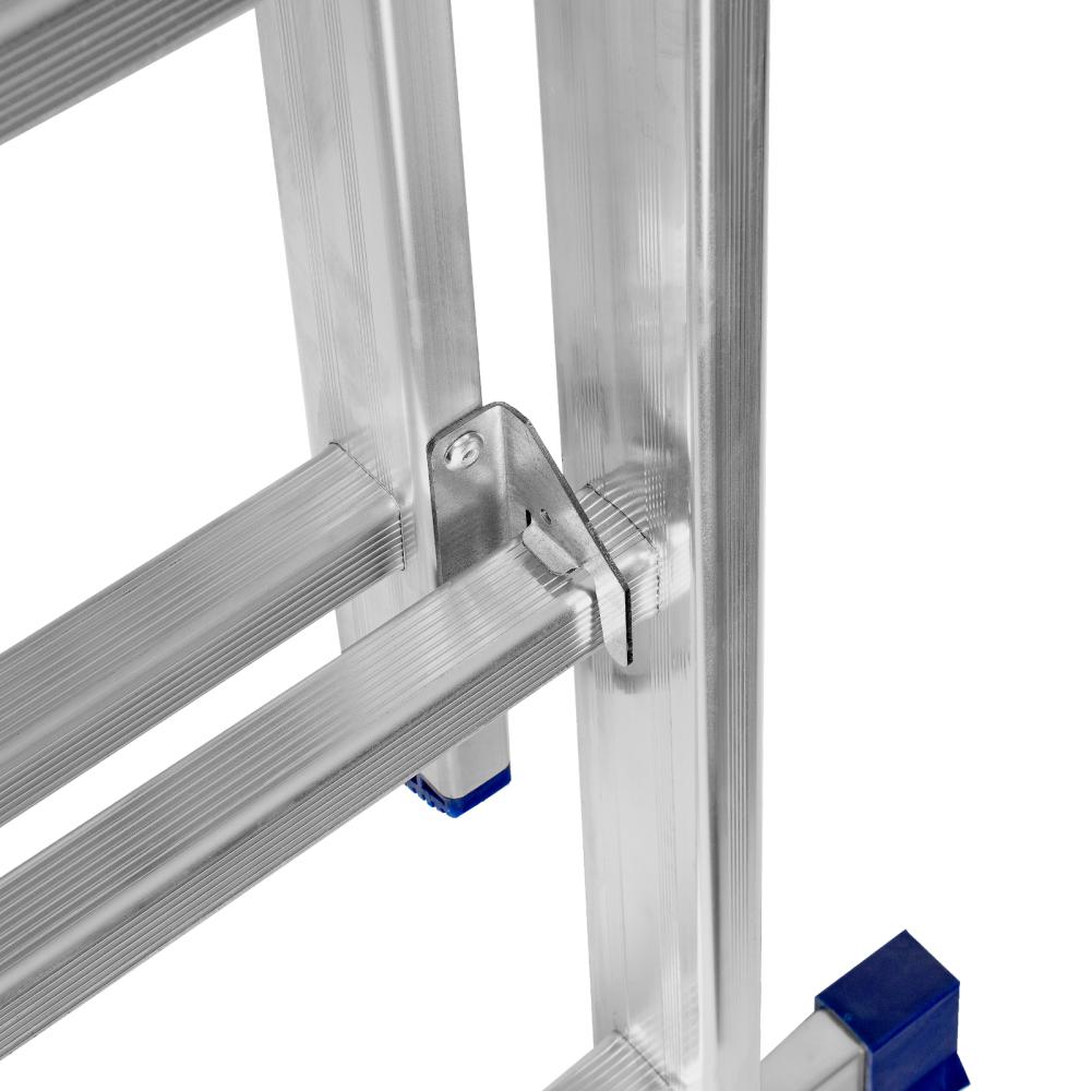 3 рабочих положения — стремянка, двухсторонняя стремянка, приставная лестница с одной или двумя секциями.