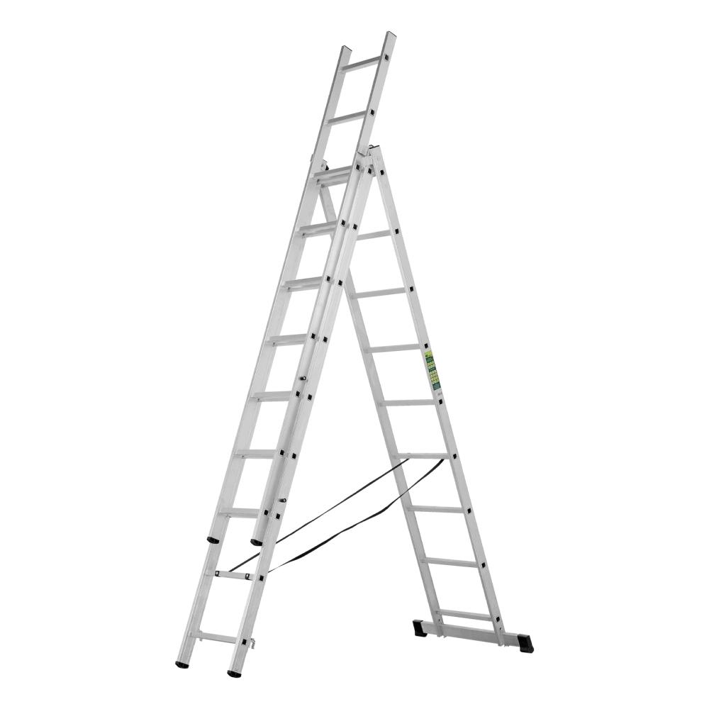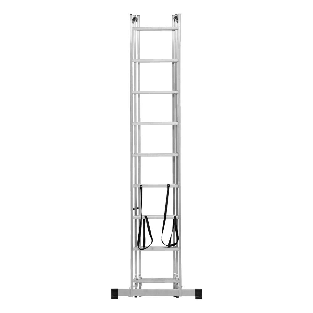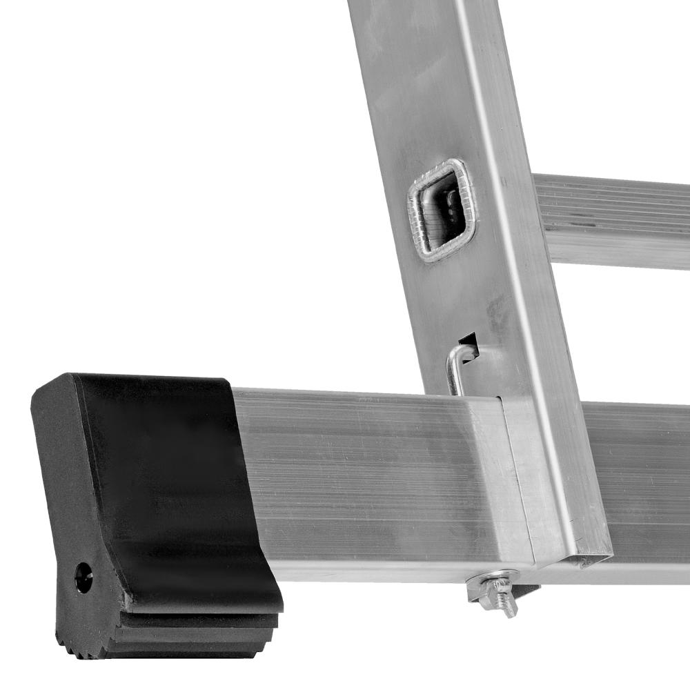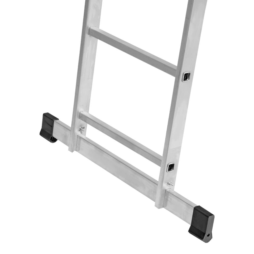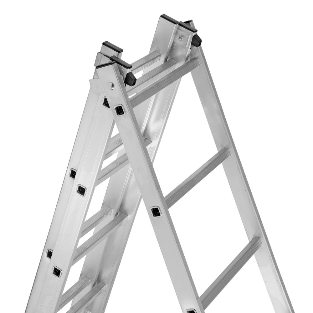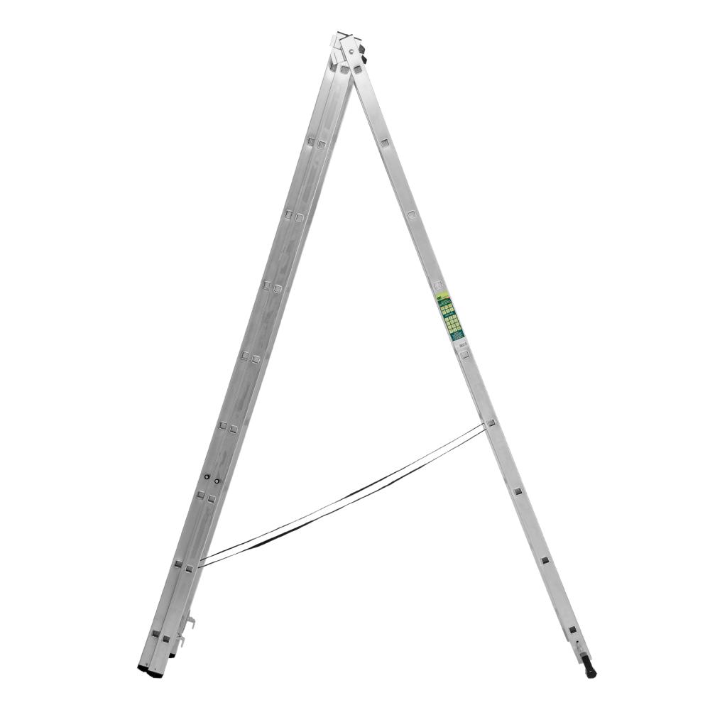 Четыре рабочих положения лестницы: стремянка, стремянка с высокой выдвижной секцией, двухсторонняя стремянка, приставная лестница.