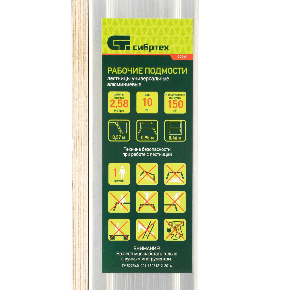 Рабочие подмости 97961, количество ступеней 2 х 4 х 2, используют для размещения инструментов и материалов, а также для работы на высоте. Рассчитаны на нагрузку до 150 кг, используются во время строительства и ремонта.