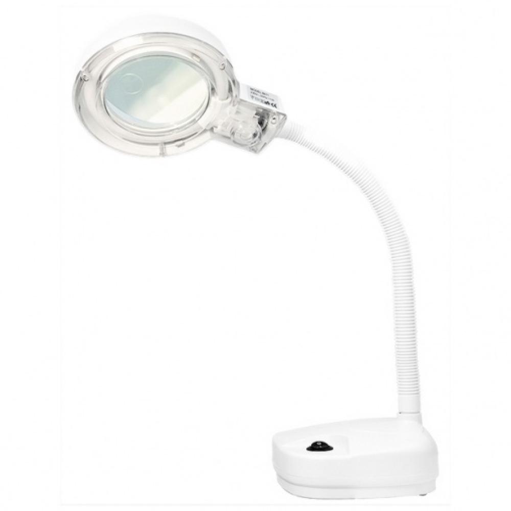 Лупа кратностью увеличения 3 с подсветкой, на гибком штативе с откидной защитой крышкой над линзой.