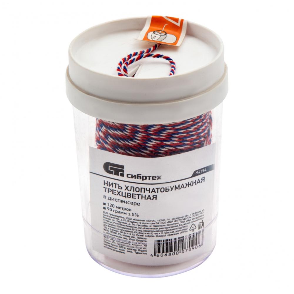 Нить ХБ 50 текс х 15, триколор, 120 м в диспенсере, вес 90 гр +- 5%, Россия Сибртех