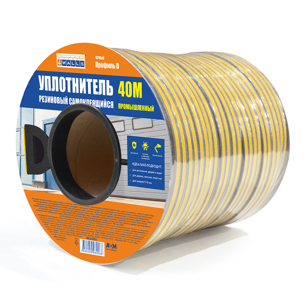 - Уплотнитель резиновый D-профиль, 14*12 мм, 40м, чё