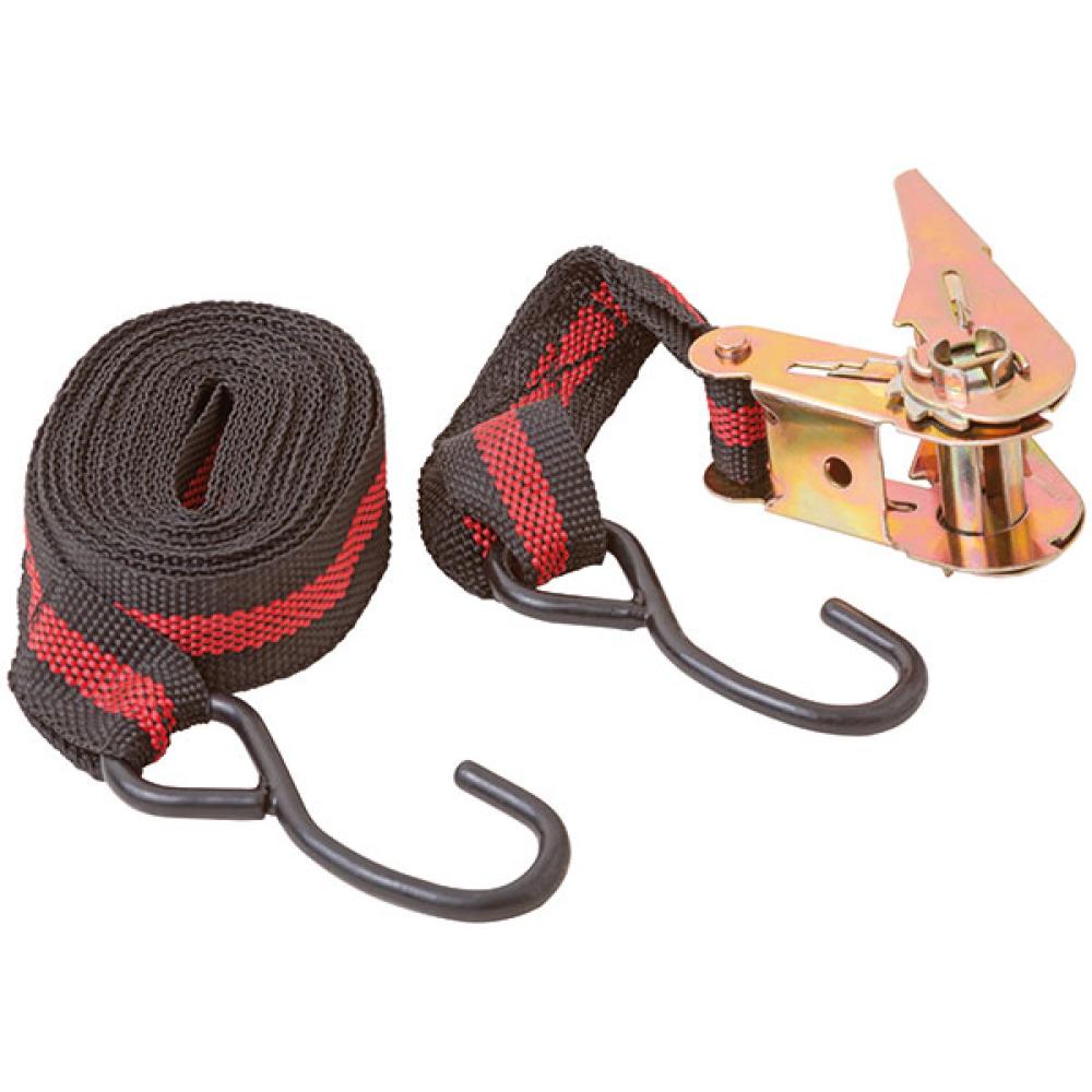 Для фиксации грузов. Замок с храповым механизмом, 2 закаленных крюка. Максимальная рабочая нагрузка 135 кг, разрывная нагрузка 270 кг. Материал: крюки из термообработанной инструментальной стали с черненым покрытием, храповый механизм из инструментальной стали с цинковым покрытием, ремень из полипропиленового волокна. Упаковка: П/Э пакет с картонным подвесом.