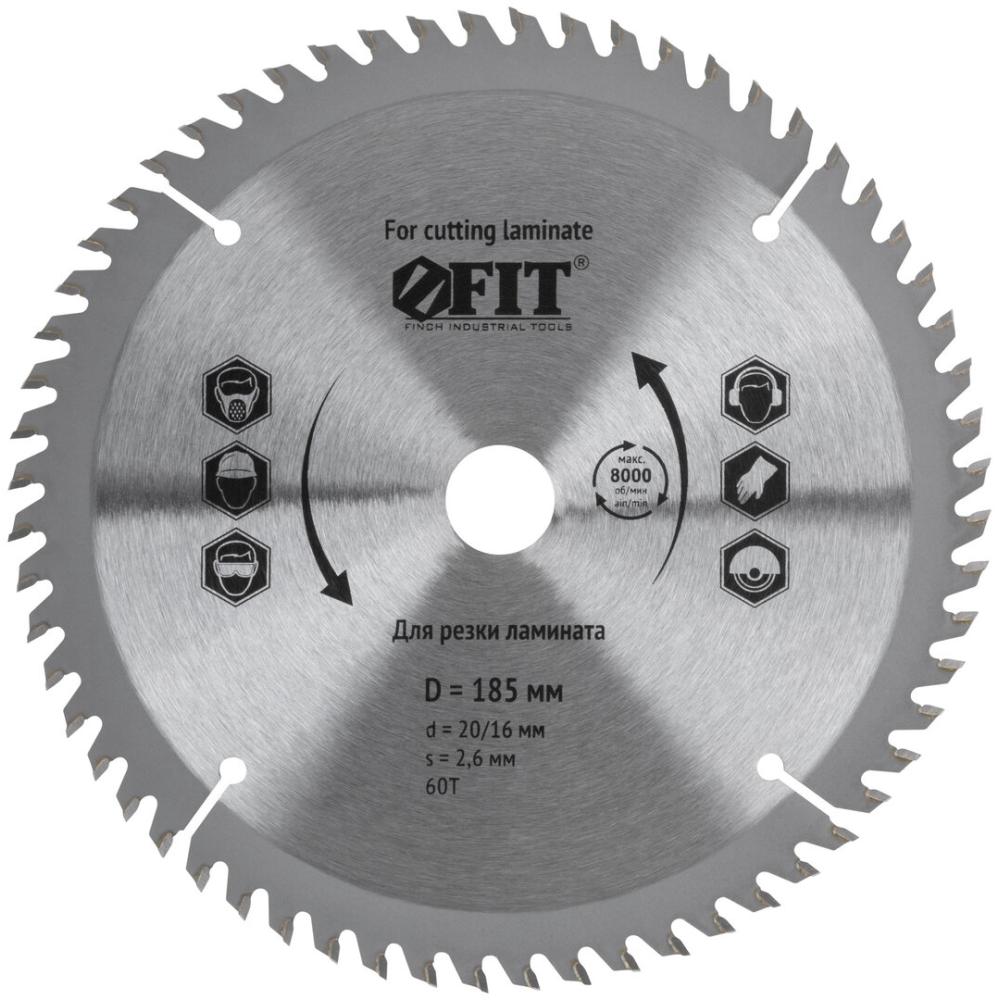 Диск пильный для циркулярных пил по ламинату 185 х 20/16 х 60t ФИТ