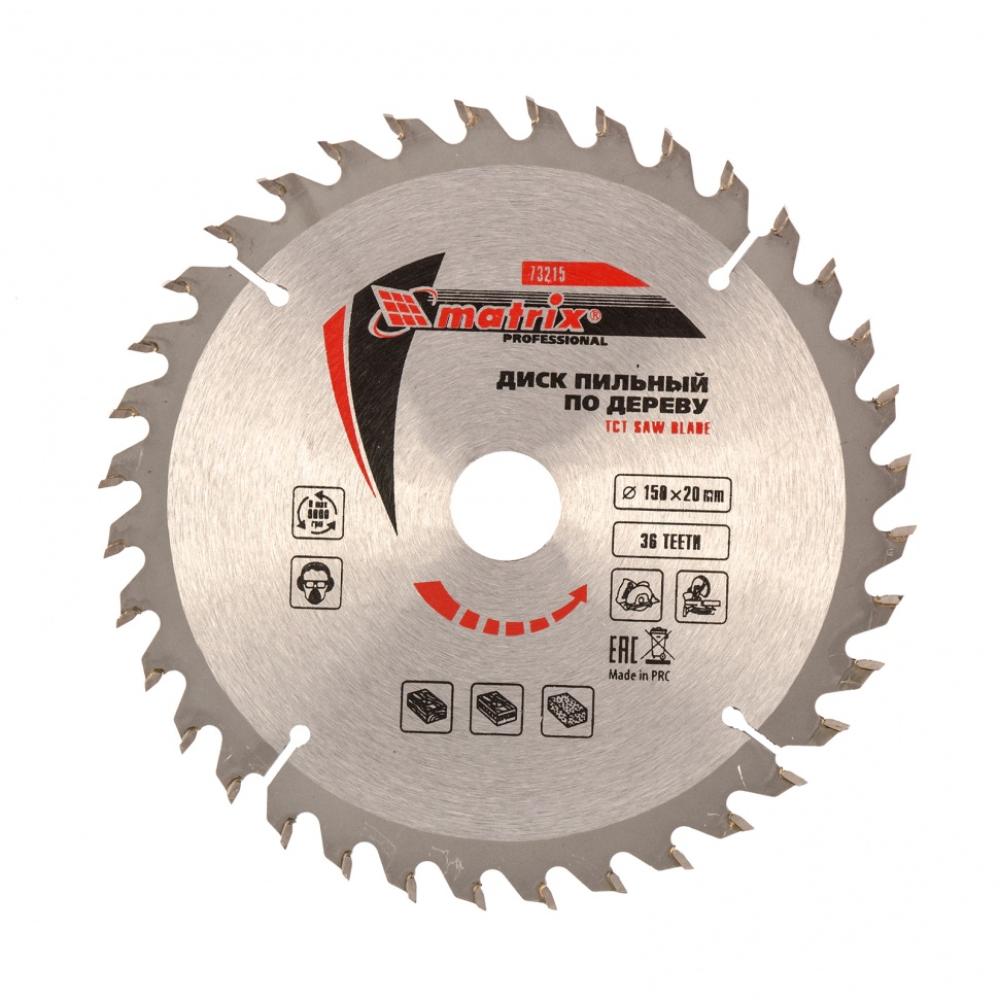 Пильный диск по дереву, 150 х 20 мм, 36 зубьев, кольцо 16/20 Matrix Professional