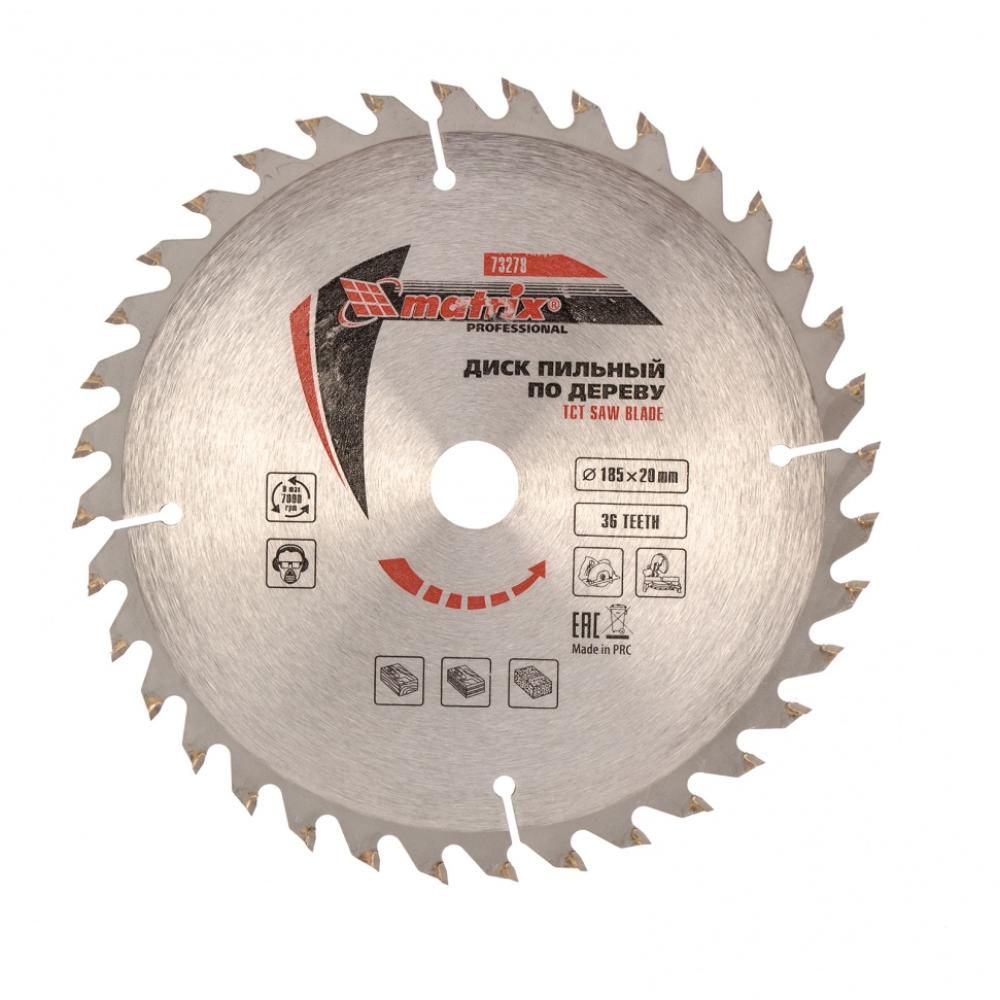 Пильный диск по дереву, 185 х 20 мм, 36 зубьев, кольцо 16/20 Matrix Professional