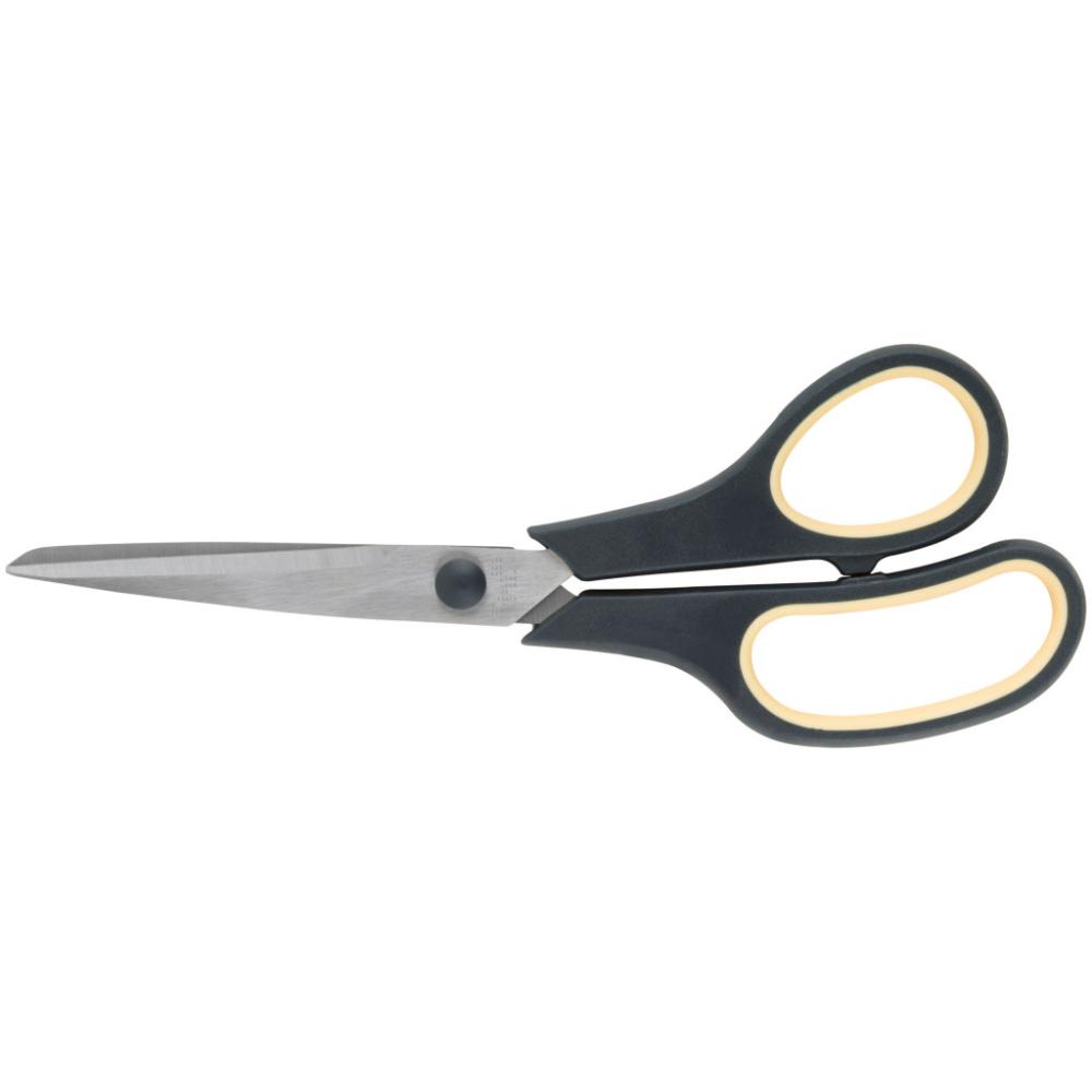 Ножницы бытовые. Толщина лезвия 1,8 мм. Материал: нержавеющая сталь, пластиковые ручки с резиновыми вставками. Упаковка: блистер.
