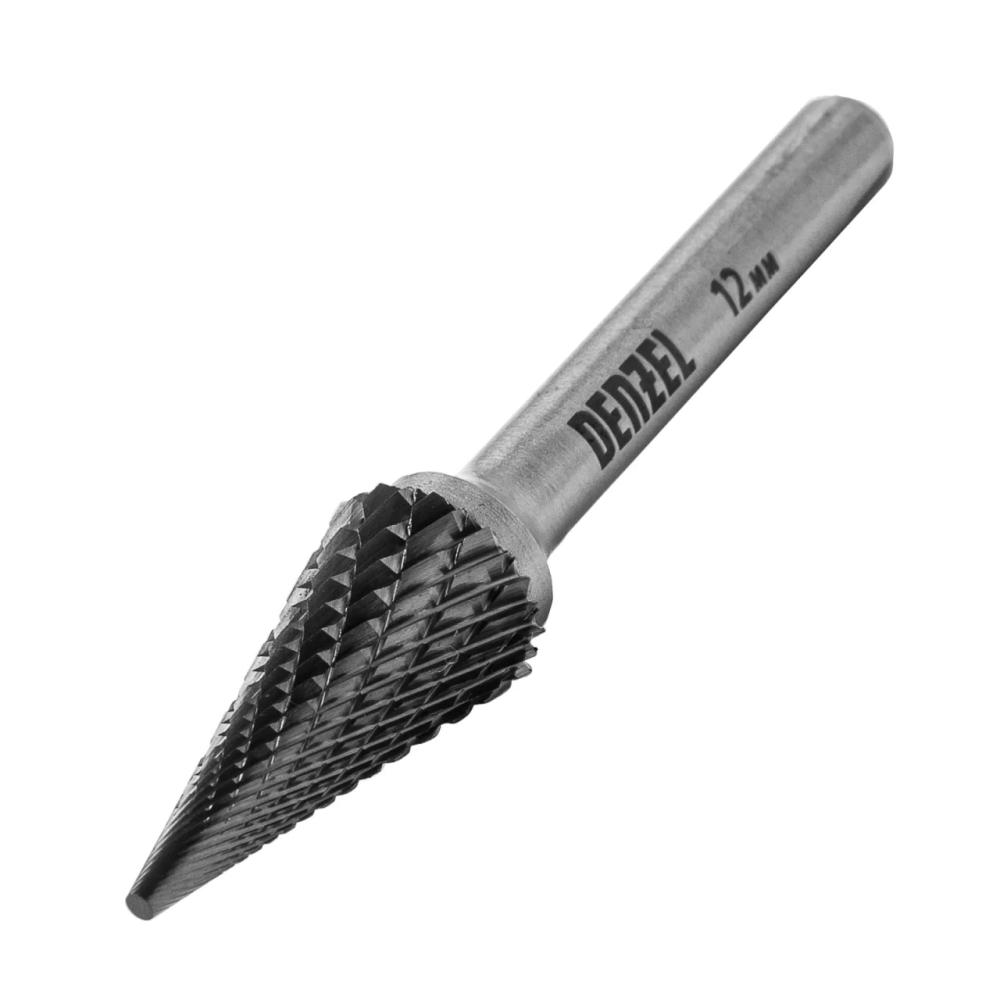 Твердосплавная борфреза по металлу Denzel 72077 с конической рабочей частью (тип M), диаметром 12 мм, — оснастка для дрели и прямошлифовальной машины. Позволяет снимать фаски и удалять заусенцы, идеальна для обработки поверхностей сложной формы, конических отверстий и пазов, а также выполнения точных работ. Подходит для шлифовки деталей из закаленной и нержавеющей стали, чугуна, бронзы, меди, латуни, титана, а также металлокерамики и искусственного камня.
