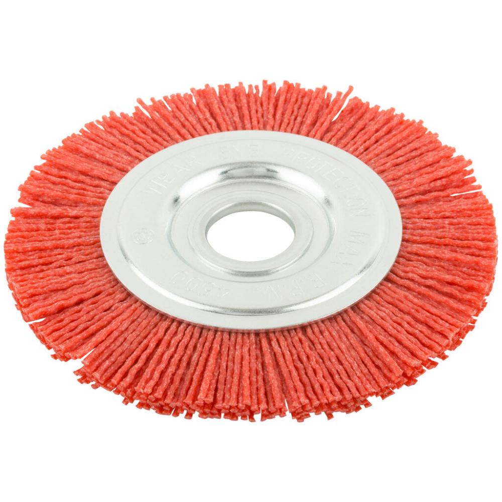 Тип «колесо». Нейлоновая. Для УШМ. Посадочный диаметр 22,2 мм. Для браширования древесины, удаления заусенцев, загрязнений и полировальных работ по дереву, пластику, стали и цветным металлам. Материал: нейлон, алюминий-оксидный абразив, основа из инструментальной стали. Упаковка: картонная коробка.