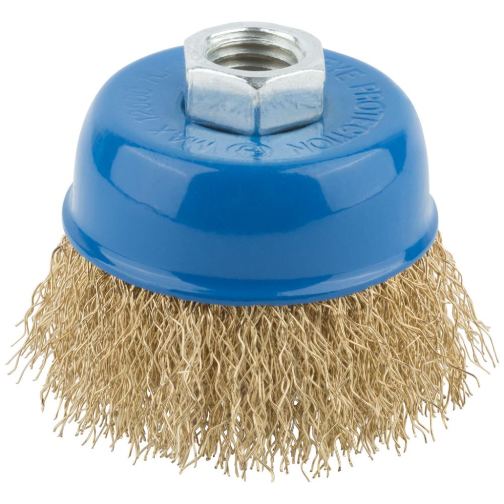 Корщетка, тип "чашка", гайка М14, стальная латунированная волнистая проволока 65 мм MOS