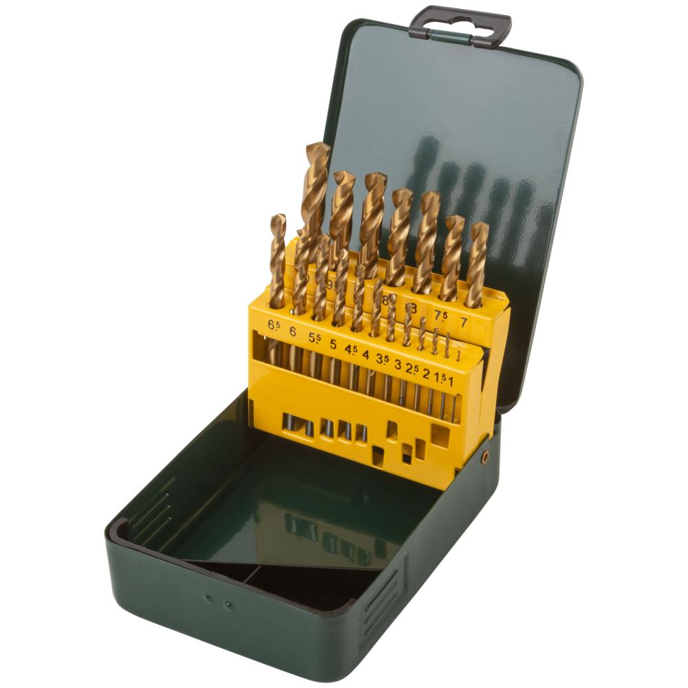 Набор сверл hss по металлу, титановое покрытие, 19 шт. (1-10 мм), металлический бокс, FIT