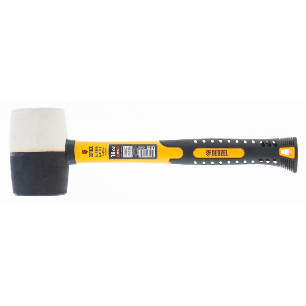 Резиновая киянка Denzel из черно-белой резины с фибергласовой рукояткой, 16 oz(450 г), применяется при проведении монтажных, сборочных и кузовных работ, укладке плитки. Резиновый боек обладает высокими амортизирующими свойствами. Часть бойка из белой резины не оставляет следов, поэтому подходит для работы со светлыми материалами. Рукоятка обладает высоким рабочим ресурсом, т.к. выполнена из фибергласа с обрезиненным покрытием который обеспечивает надежный хват без проскальзывания. Киянка имеет высокий показатель прочности, устойчива к воздействию внешней агрессивной среды и хорошо поглащает вибрацию, поэтому подходит для профессионального применения.