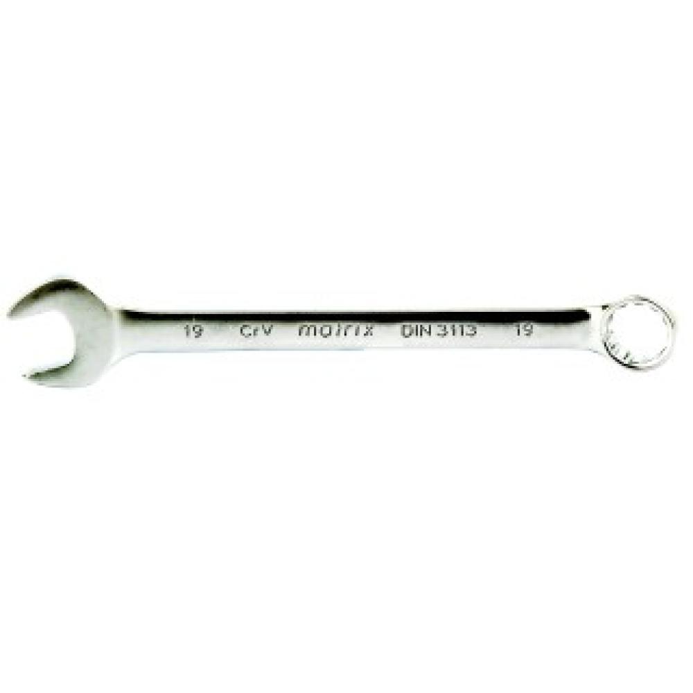 Комбинированный ключ Matrix 15115 размером 19 мм, из стали CrV, с покрытием «матовый хром», пригодится во время ремонтных работ дома или в гараже. С его помощью можно быстро монтировать и демонтировать крепежные элементы. Угол наклона кольцевого зева относительно плоскости инструмента составляет 15°, поэтому ключом удобно работать в труднодоступных местах.