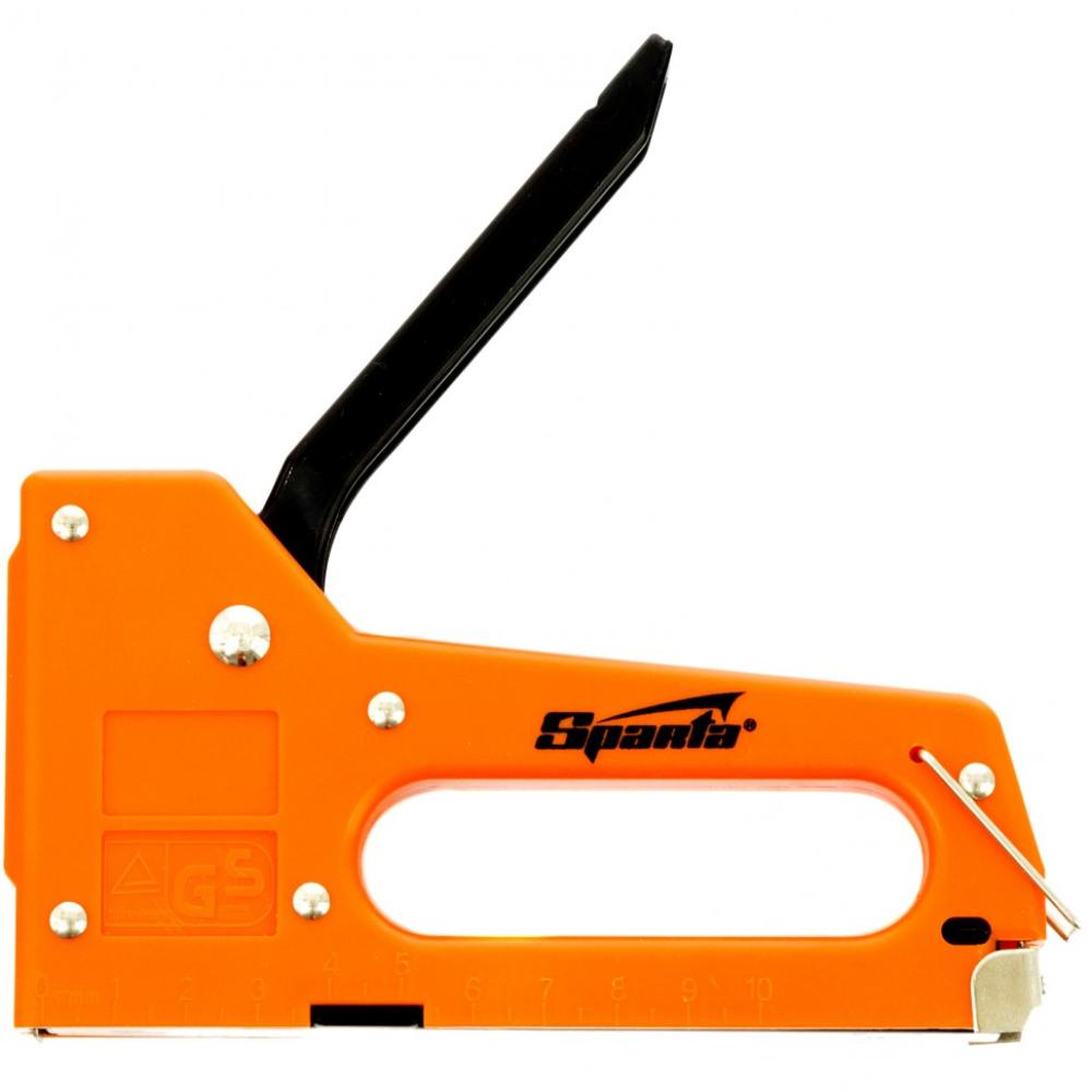 Пластиковый мебельный степлер Sparta 42001 совместим с крепежами типа 53 размером 4-8 мм и поставляется со скобами в количестве 100 шт. Используется для быстрого скрепления с деревянным основанием фанеры, оргалита, ДСП, ДВП, пленки, утеплителя и других листовых материалов. Будет полезен при сборке шкафов, обивке мягкой мебели, при выполнении теплоизоляционных и других крепежных работ.