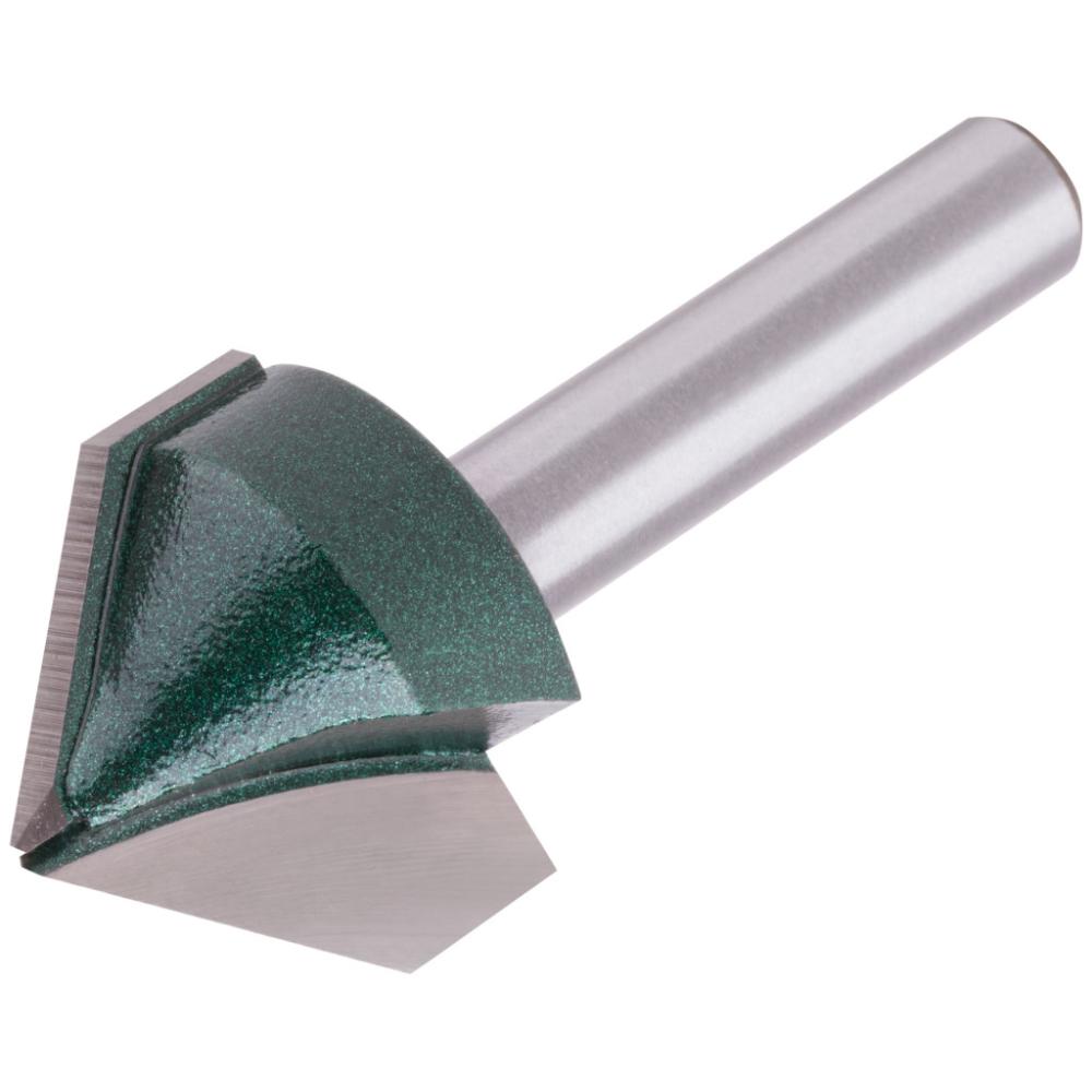 Используется для работ по дереву. Для фрезерования пазов. Угол при вершине 90°. Цилиндрический хвостовик. Материал: инструментальная сталь, с твердосплавными режущими вставками. Упаковка: пластиковая коробка.