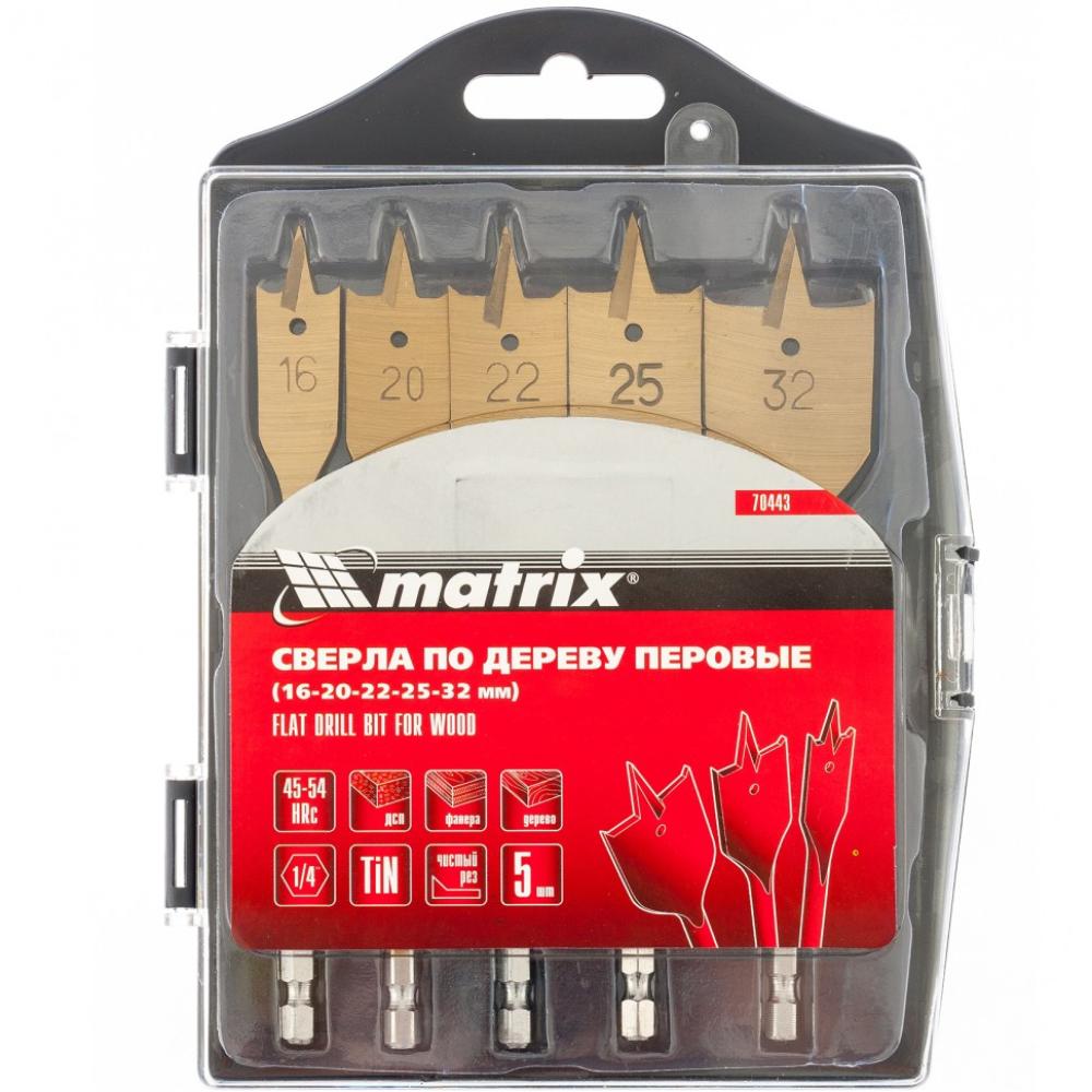 Набор Matrix 70443 состоит из 5 перовых сверл по дереву диаметром 16-20-22-25-32 мм и поставляется в пластиковом кейсе. Позволяет получать сквозные и глухие отверстия в древесине. Сверла устанавливаются на электрические и механические дрели или шуруповерты.